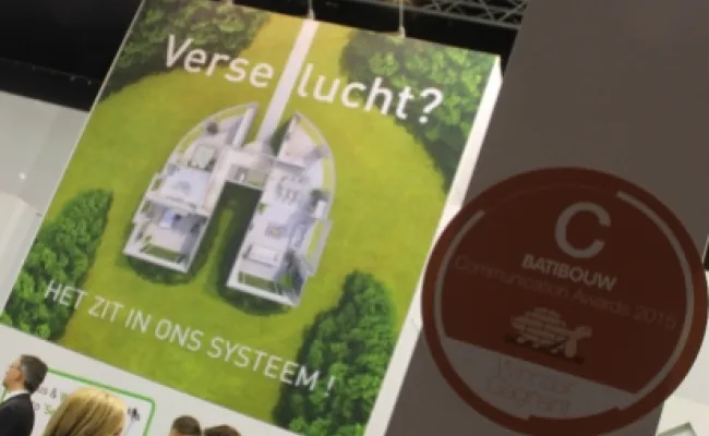 Het is een mooie traditie. Bedrijven die creatief en efficiënt omspringen met hun communicatie worden tijdens Batibouw in de spotlights gezet met de Communication Award. Uit de meer dan 1000 exposanten ging de Belgische ventilatiespecialist Duco dit jaar met de hoogste eer lopen. De campagne voor hun nieuwste ventilatiesysteem, de DucoBox, werd geprezen voor de opvallende beeldvorming en de duidelijke boodschap. Een efficiënt stukje communicatie dat bij de vakjury, samengesteld uit toonaangevende professionals uit de communicatie- en beurssector, sterk in de smaak viel.