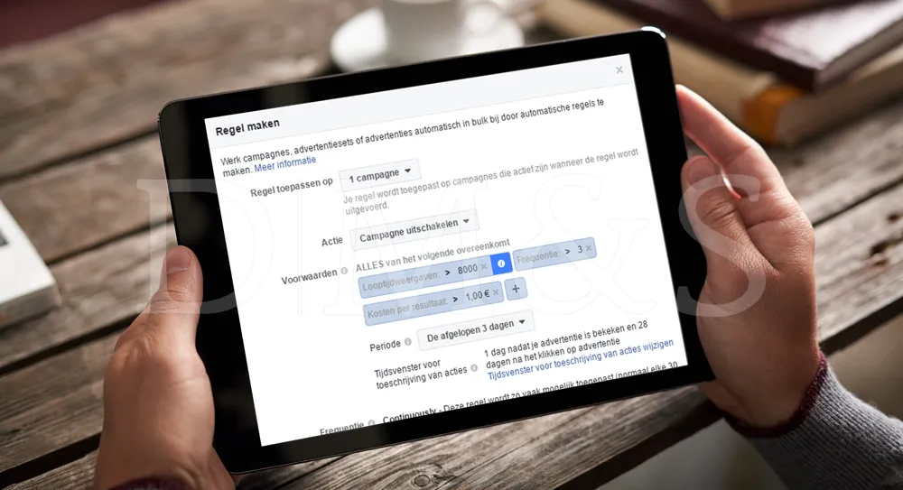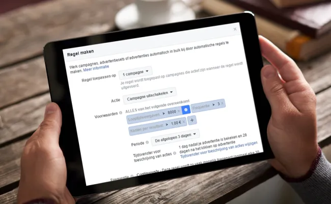 Vanaf nu is het mogelijk om een vaste regel in te stellen voor uw Facebook- advertenties. U kunt dus uw campagne automatisch laten stoppen wanneer uw campagne bijvoorbeeld een hogere frequentie bereikt dan 3 of wanneer de kost per klik 1 euro overschrijdt. Door automatische regels in te stellen, spaart u veel tijd uit aan beheer!