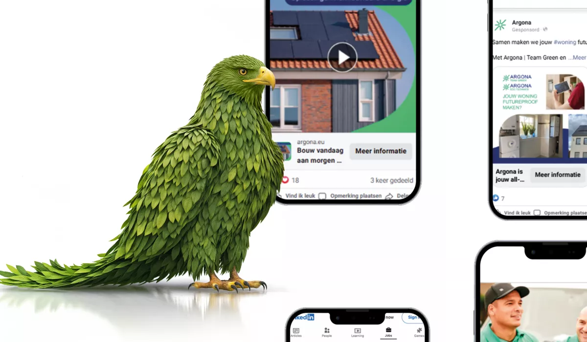 In een technische sector spring je er niet zomaar uit. Daarom kozen we voor een opvallend campagnebeeld om Argona te lanceren: een 3D-groene adelaar met een vacht van bladeren, die over gebouwen uitkijkt. Een krachtig symbool voor de duurzaamheidsambitie van Argona en dé blikvanger in alle communicatiekanalen. Awareness? Check!