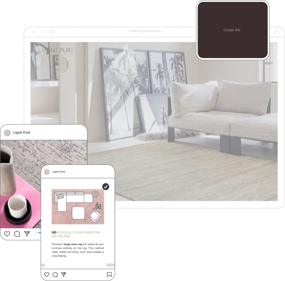 De Instagramcampagne versterkte gedurende enkele maanden de brand awareness van Ligne Pure bij een designgevoelig publiek, maar ons onlinemarketingteam had nog meer in petto. Met Google Advertising zorgde het er ook voor dat het merk in dezelfde periode maximaal vindbaar was op bepaalde keywords. Of hoe we een high-end merk hoog hebben laten scoren in de sociale media en Google!