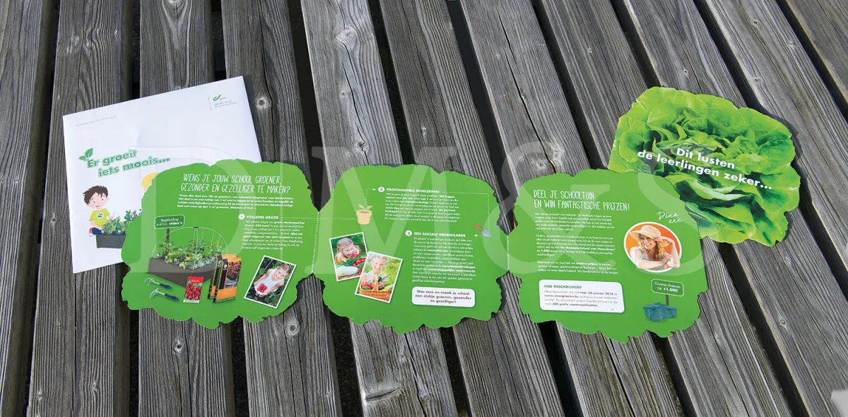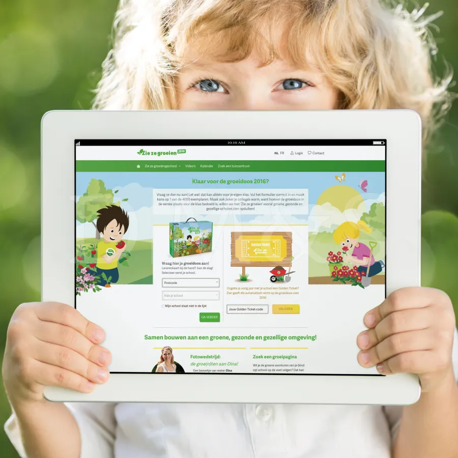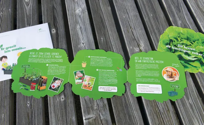 Zelf groenten kweken op school, het is een leerrijk en leuk concept. Maar dat alleen was nog niet voldoende om de basisscholen te overtuigen om mee te doen. En dus gaven we alle communicatietools een frisse vormgeving op maat van de jeugd. Offline en online. Door het startpakket enkel aan de 300 eerste scholen weg te geven, bouwden we een duidelijke call to action in. Snel inschrijven was dus de boodschap.