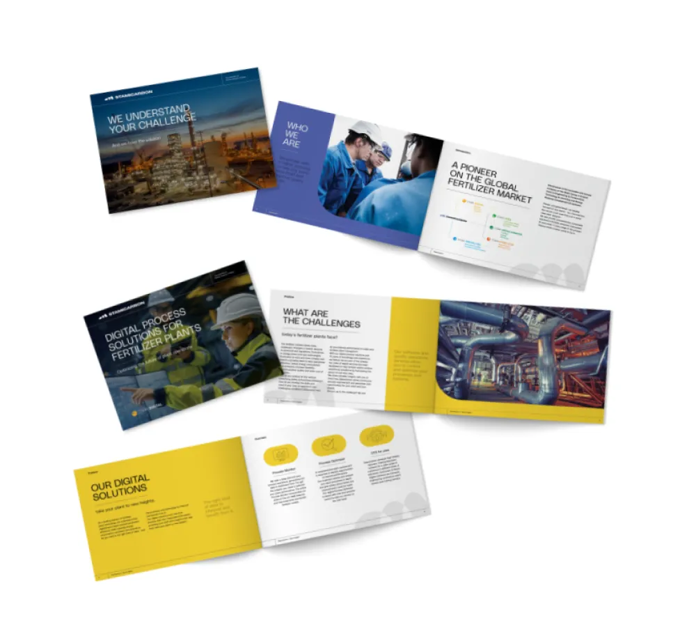 Om de Stamicarbon huisstijl in lijn te brengen met de nieuwe corporate guidelines vertrokken we vanuit de basisstijl van de MAIRE Group. We ontwikkelden een nieuwe grafische stijl en pasten het logodesign aan. Alles moest aansluiten bij de internationale stijl, maar trouw blijven aan de waarden van Stamicarbon. Kortom, het moest een slim, herkenbaar en aantrekkelijk stijlcompromis worden. Het opgefriste design pasten we ondertussen al toe op brochures die ook onlline moesten kunnen worden geraadpleegd. Daarnaast zetten we alle huisstijlregels nog eens netjes op een rijtje, met het oog op toekomstige realisaties.