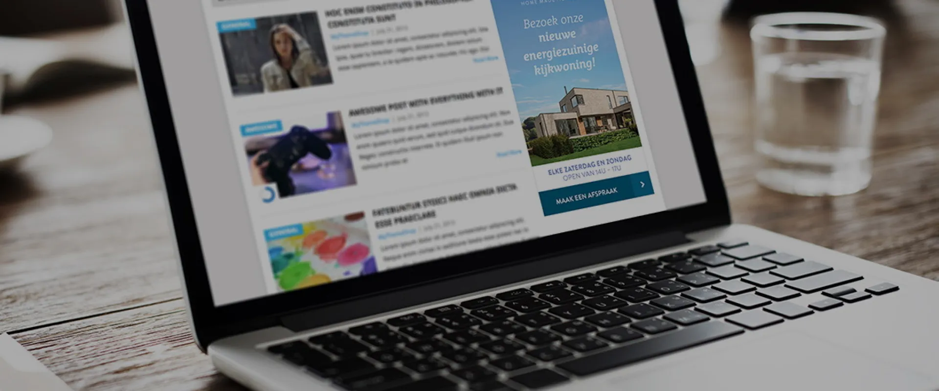 Pour informer les différents groupes cibles de l’ouverture, nous avons recouru à l’offline et l’online. Nous avons créé une brochure qui met l'accent sur la maison témoin, en tenant compte de l’avis des fournisseurs. De la porte d’entrée au chauffage par le sol ; cet ouvrage de référence décrit chaque aspect de la maison par le biais de belles images en couleurs. En parallèle, des campagnes radio étaient diffusées sur Studio Brussel, Contact Sud et Antipode pour faire la publicité de la maison témoin et des journées portes ouvertes des 25 et 26 mars.